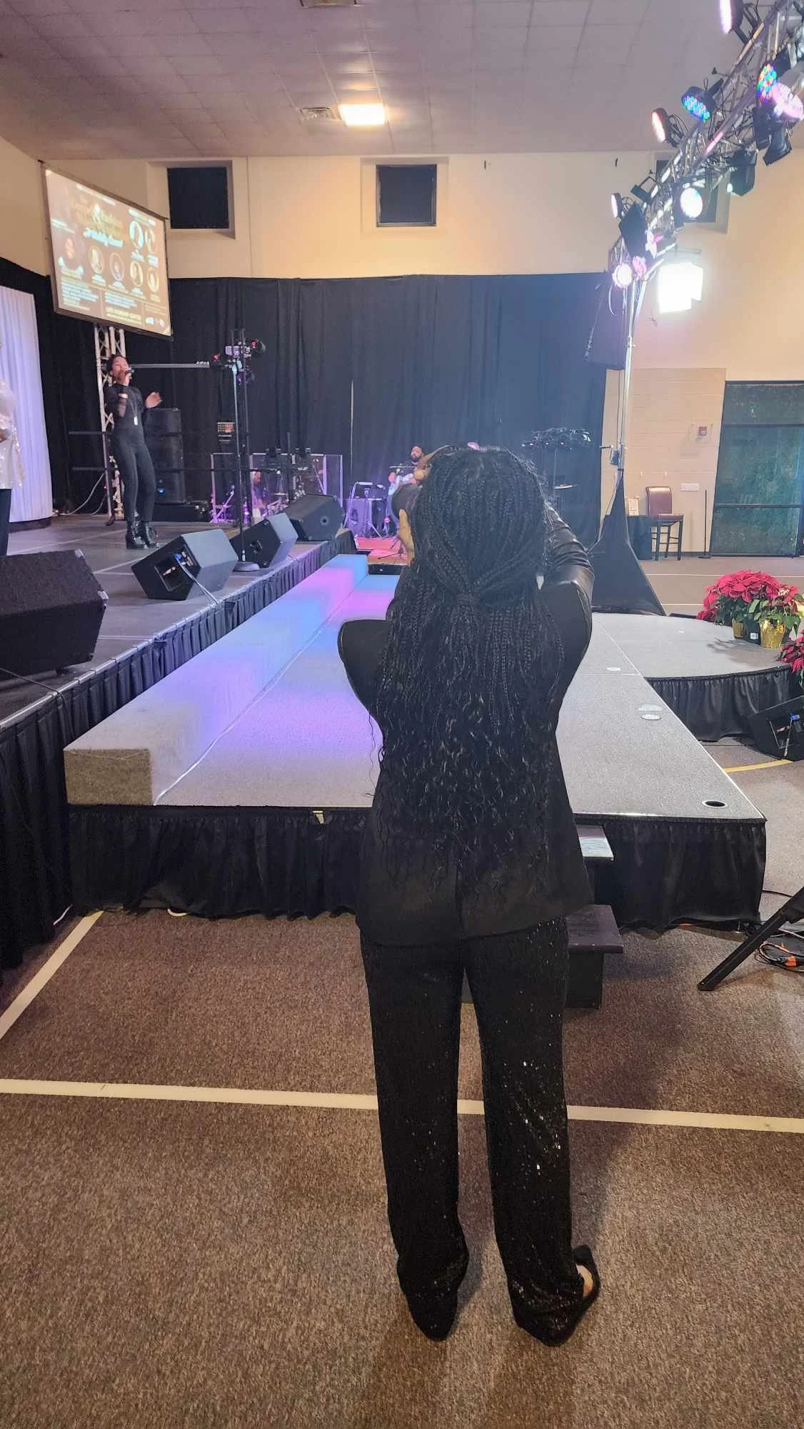 Tonight was a soul-stirring night, where the echoes of an old-school tent revival intertwined seamlessly with the contemporary energy of a lock-in emerged as more than a mere holiday concert. As a co-host, I found myself privileged to witness a grand family reunion, where diverse communities converged into a larger familial embrace of love and togetherness. The stage was adorned with a constellation of talents, featuring influential personalities. A heartfelt collaboration unfolded on stage, symbolizing a profound connection with my brother and friend, Al Howard, the Founder, and Managing Director of Good Steward Apparel, who served as the other co-host. The visionary force behind the entire event, Kimberly Winborne, demonstrated her innate evangelistic gift by curating a lineup of talent that etched ineradicable imprints on the hearts of the audience.